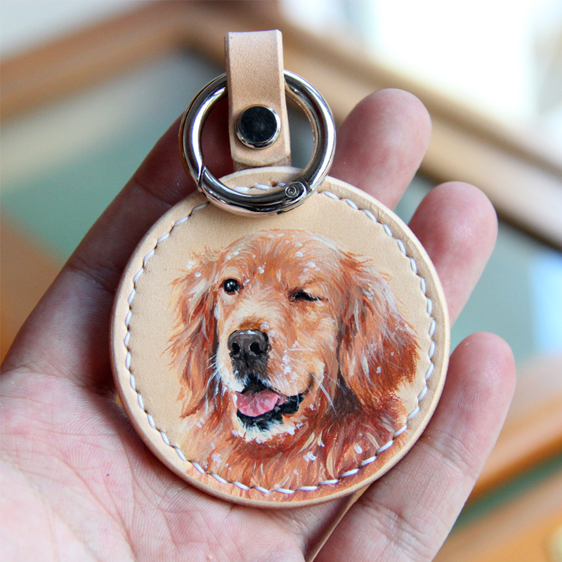 Pet Portrait Hand-Painted Custom Leather Cat Tag