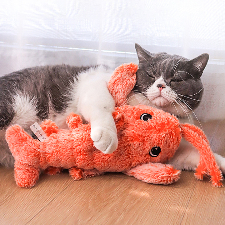 Jumping Lobster Plush USB Charging Interactive Cat Toy with Catnip