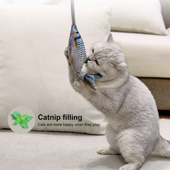 【Realistic & Interesting】 - This interactive cat toy uses 3D to make the fish very realistic, made according to real proportions, and similar in size to the prey, 9.45” * 3.94”. When you pull this catnip toy to move and jump or squeeze the airbag to make the fishtail swing, it will make the kittens more excited and stimulate the cat's interest in hunting.