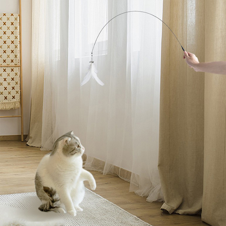 ✔ MATERIAL - With a white feather, bell, and pliable wand made of high-quality steel wire, feathers, and plastic, this pet cat toy will not cause pain.