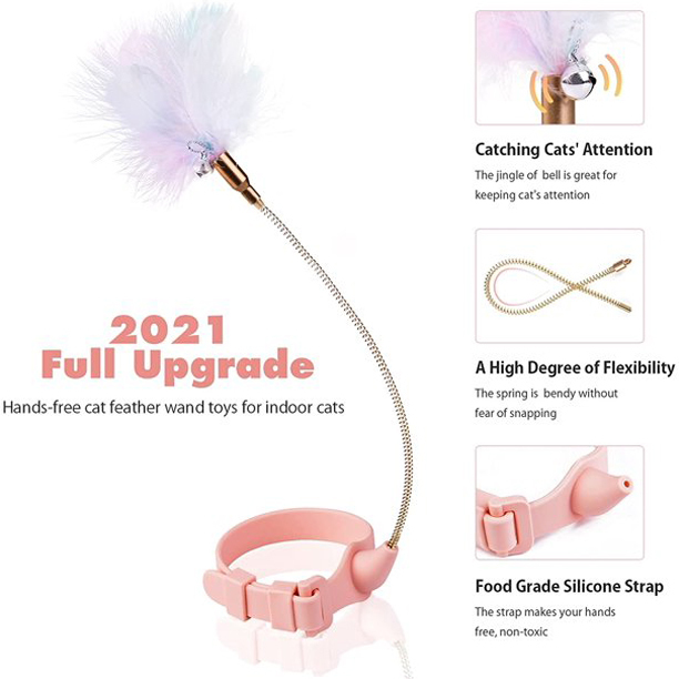 - The latest design cat teaser - The cat wears the adjustable collar, and the feather on the spring link is right in front of the cat, making them run and jump like a wild animal, driving your cats crazy with joy!