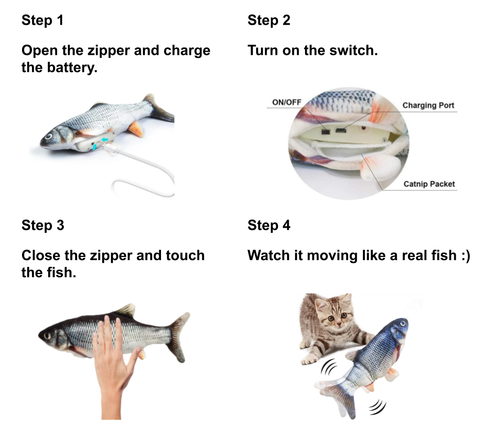 The Floppy Fish Cat toy is an amazing way for your cats to release energy! Make playtime more enjoyable by simulating their fish hunting instincts! It's made of strong durable materials that are safe and non-toxic and it's USB rechargeable. No matter your cat's age, they'll be as playful as a kitten with Flippity Floppy Fish™.