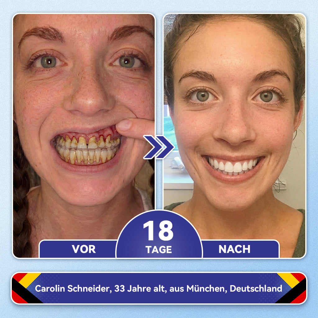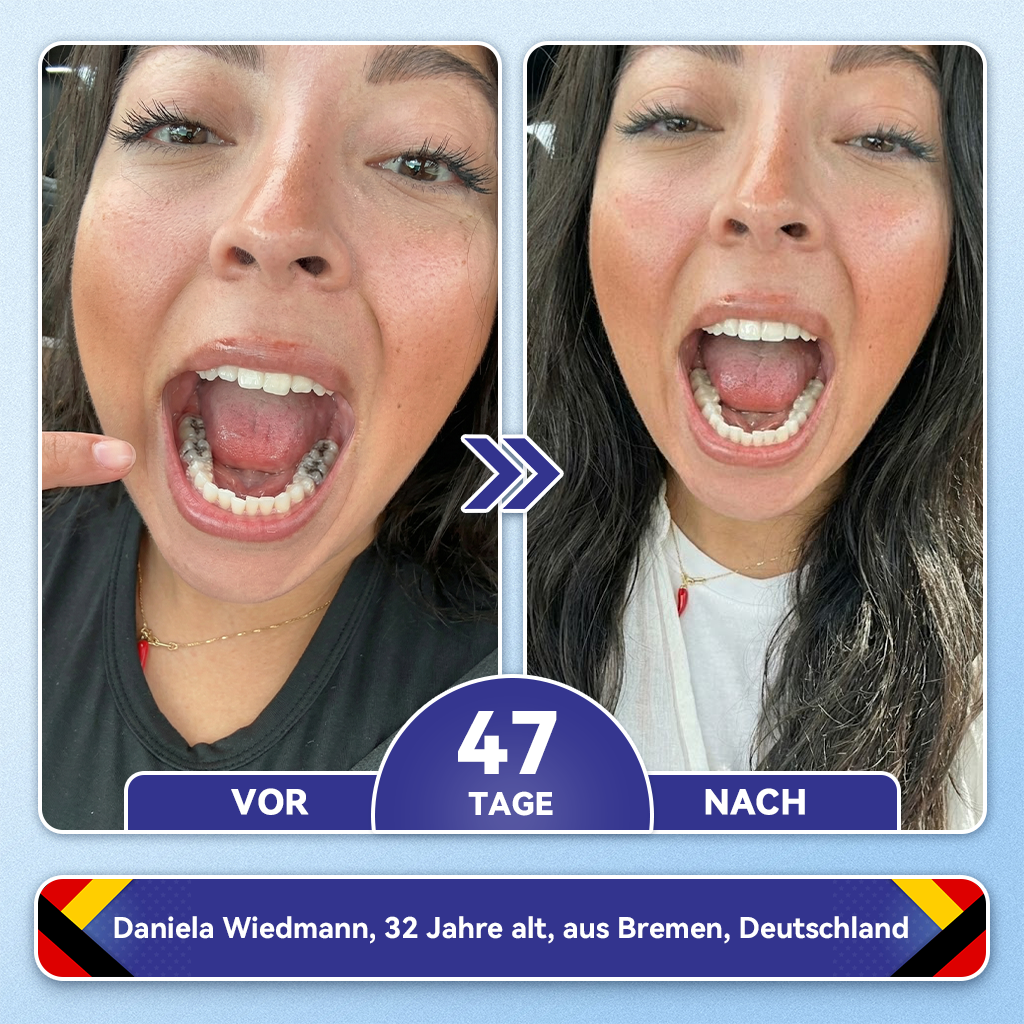 Nach 85 Tagen der Anwendung konnte ich die Veränderungen mit eigenen Augen sehen. Die dunklen. geschädigten Stellen füllten sich allmählich wieder auf – Schicht für Schicht. Was sich einst brüchig und im Verfall begriffen anfühlte. sah plötzlich wieder intakt aus – als würden meine Zähne von innen heraus wiederaufgebaut. Ja. Sie haben richtig gehört.