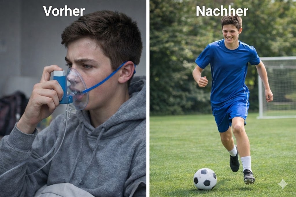 Als 17-Jähriger war Asthma im Grunde der Albtraum meiner Schulzeit. Ich bin ein riesiger Fußballfan, aber in jeder Sportstunde war ich genau das Kind, das am Spielfeldrand saß und seinen Notfallspray krampfhaft umklammerte, während alle anderen spielten. Am schlimmsten war es, mitten in einem stillen Klassenzimmer einen Asthmaanfall zu bekommen – das Keuchen klang wie eine kaputte Trillerpfeife, und ich spürte förmlich, wie alle mich anstarrten. Ich habe jedes erdenkliche Spray ausprobiert, doch sie wirkten immer nur für wenige Minuten und hinterließen bei mir stets ein Gefühl von Zittern, Nervosität und völliger Angst.